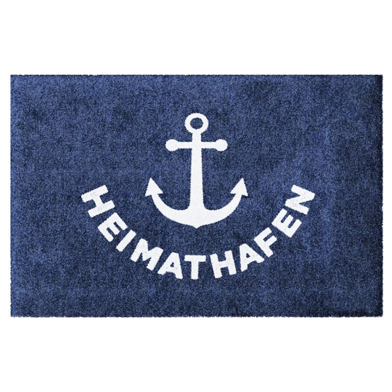 Fußmatte „Heimathafen“ mit Anker auf Blau