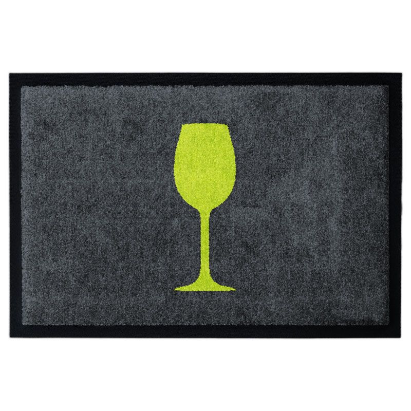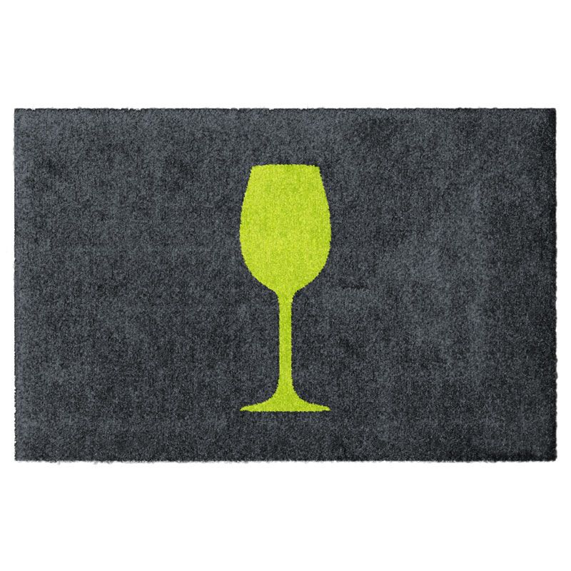 Fußmatte mit grünem Weinglas auf Grau