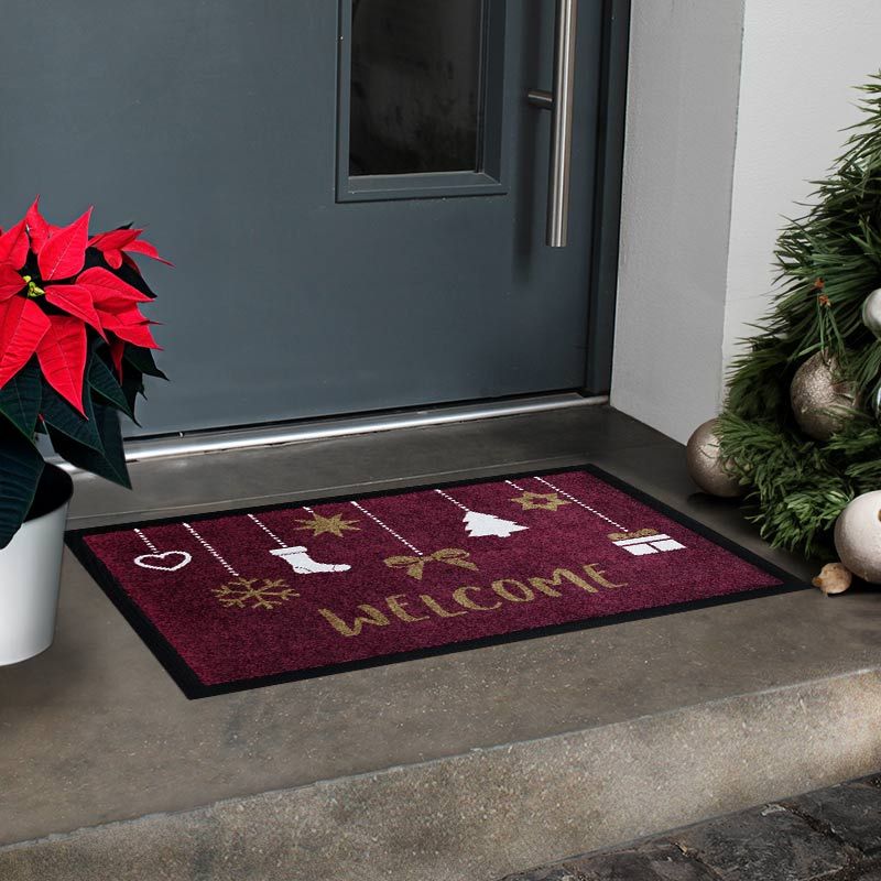 Schicke rote Weihnachts-Fußmatte aus der Glücksmatte-Weihnachtskollektion.